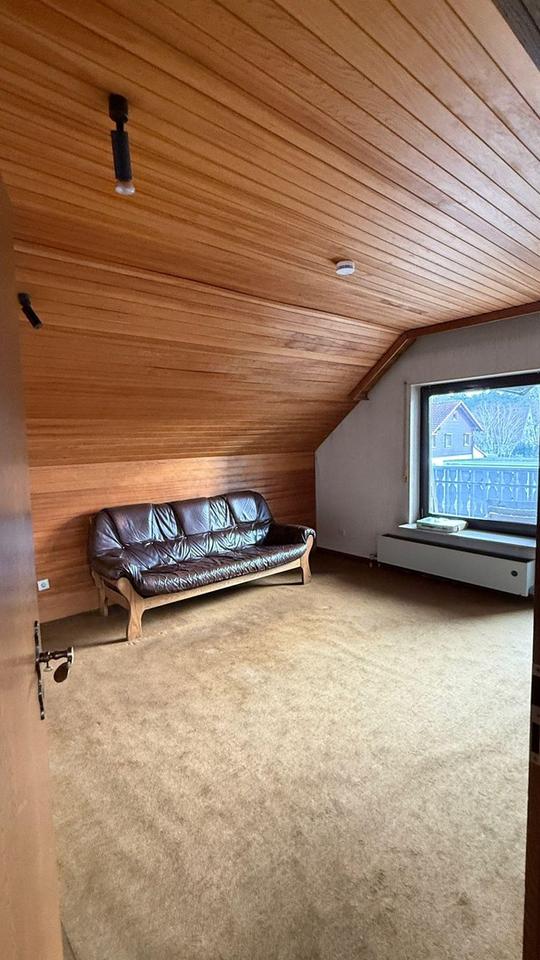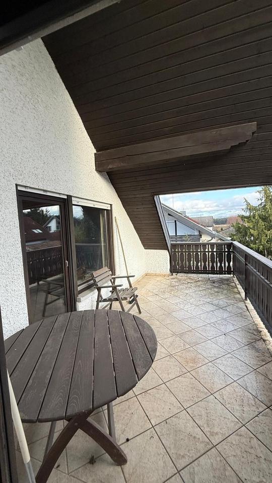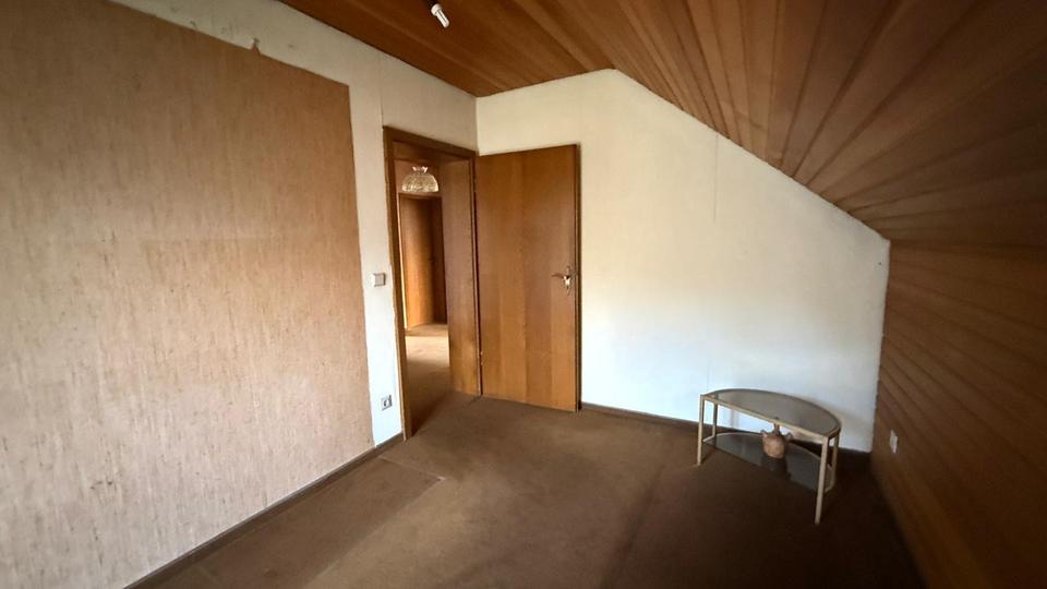 Im Obergeschoss befindet sich eine abgeschlossene 3-Zimmer-Wohnung mit großzügigem Bad, Küche sowie einer nach Süden ausgerichteten, teilweise überdachten Dachterrasse. Zusätzlich steht außerhalb der Wohnung, direkt vom Treppenhaus aus zugänglich, ein weiteres Zimmer zur Verfügung, das flexibel der oberen oder unteren Wohneinheit zugeordnet werden kann.