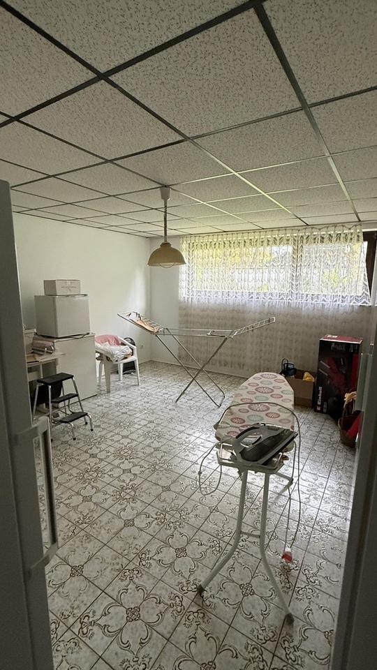Das Souterrain wird derzeit als Abstellfläche genutzt, bietet jedoch aufgrund der hohen Decken und großzügigen Fensterflächen vielfältige Nutzungsmöglichkeiten. Hier befinden sich zudem die Waschküche mit WC und Duschbad, eine Sauna mit Bartresen sowie der Heizungsraum.