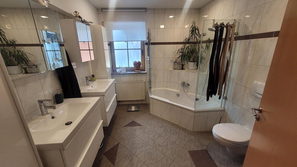 Das Souterrain bietet mit der ebenfalls hellen Einliegerwohnung mit großzügigem Wohn-/Essbereich, großem Schlafzimmer, Küche sowie ein zum Ausbau vorbereitetem Duschbad, weit mehr als eine klassische Nutzfläche. Zusätzlich überdachte Terrasse, Sauna mit großem Duschraum, separates WC sowie weitere Räume wie Hauswirtschaftsraum, Heizraum, weiterer Abstellraum. Auch befindet sich hier nochmals ein weiterer separater Eingang. Alle Fenster im gesamten Haus (auch im Dachgeschoss) haben Rolladen.