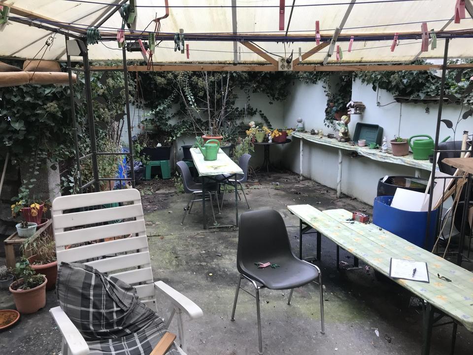 Das Grundstück hinter dem Haus gehört teilweise zu den Wohnungen und teilweise zum direkten Nachbarn.