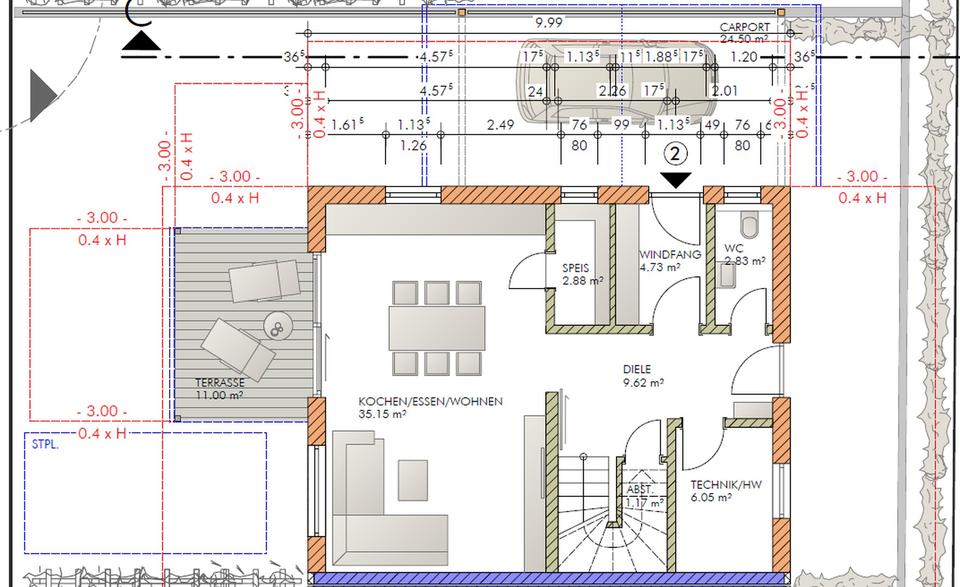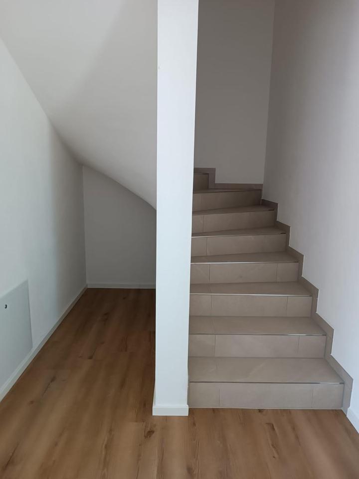 Das Erdgeschoss umfasst einen einladenden Eingangsbereich, einen separaten Wohnbereich sowie einen großzügigen Ess- und Kochbereich mit direktem Zugang zur Terrasse und zum eigenen Garten – perfekt für Freizeit und Entspannung. Großzügige Fensterfronten sorgen für viel Tageslicht und eine angenehme Wohnatmosphäre. Ein Gäste-WC mit Waschbecken und Waschmaschinenanschluss sowie ein separater Technikraum runden das Raumangebot im Erdgeschoss ab.
