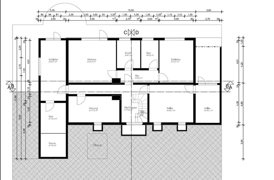 Untergeschoss ca.68m² mit 3 Zimmer, Bad, Sauna.