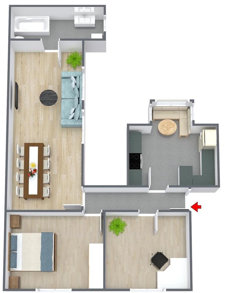 Die Wohnung präsentiert sich in einem gepflegten und modernen Zustand. In den Wohnräumen ist ein ansprechender Boden in Holzoptik verlegt, der den Räumen eine warme und freundliche Ausstrahlung verleiht. Die vorhandene Einbauküche ist funktional ausgestattet und verfügt über eine moderne Gestaltung mit guten Stauraummöglichkeiten. Das Badezimmer ist hell gefliest, verfügt über Tageslicht und ist mit einer Badewanne ausgestattet. Helle Wandflächen, gepflegte Türen und eine insgesamt freundliche Raumwirkung unterstreichen den guten Gesamteindruck. Besonders hervorzuheben ist das zusätzliche Zimmer, das sich flexibel nutzen lässt und die Wohnung auch für Mieter mit Homeoffice-Bedarf sehr interessant macht.