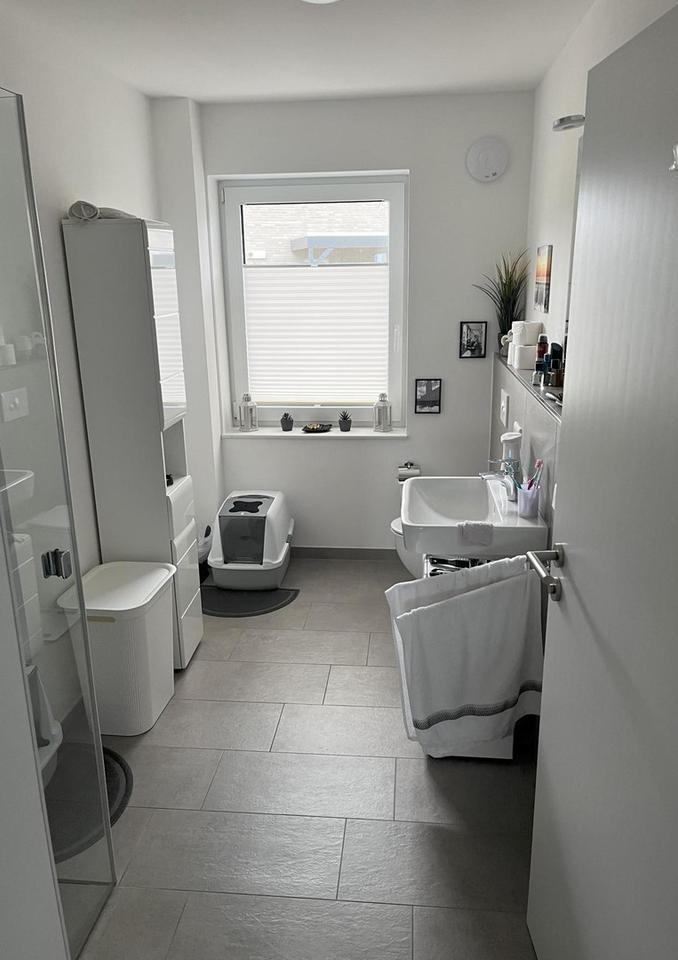 – Geräumiges Badezimmer: Ausgestattet mit einer modernen Dusche.
