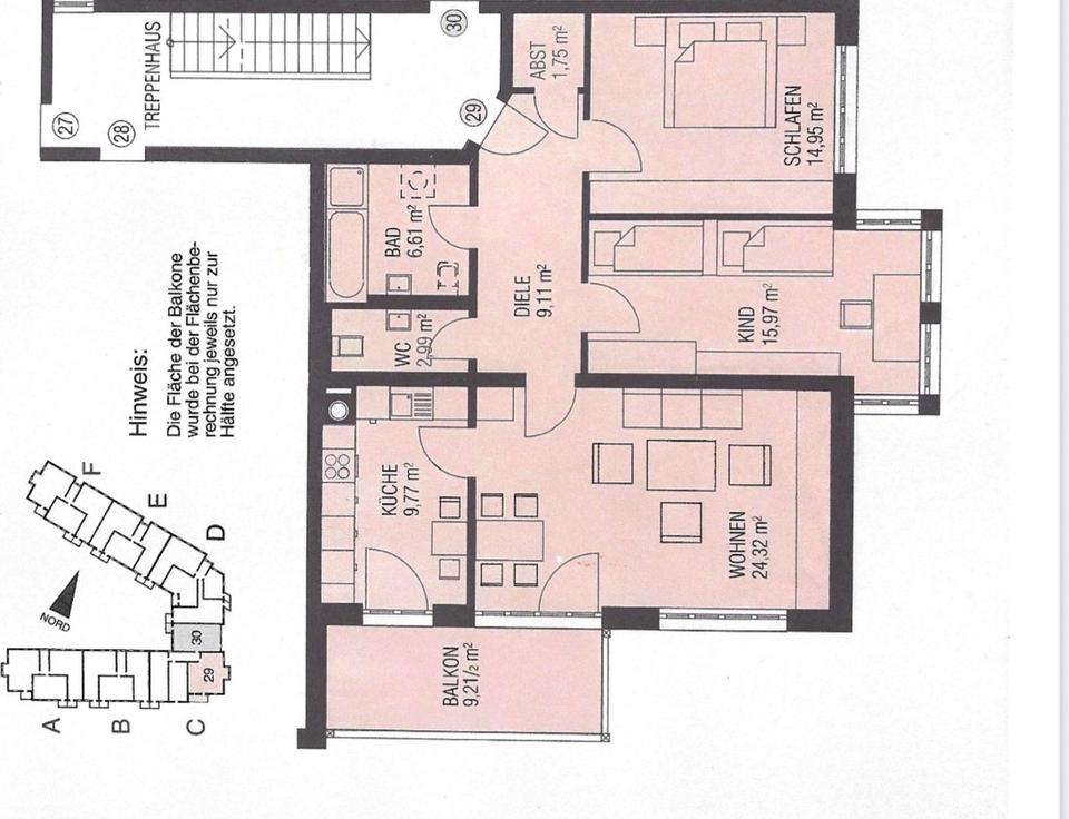 Balkon, Keller, Vollbad, Einbauküche, Gäste-WC, Parkett, Fliesen