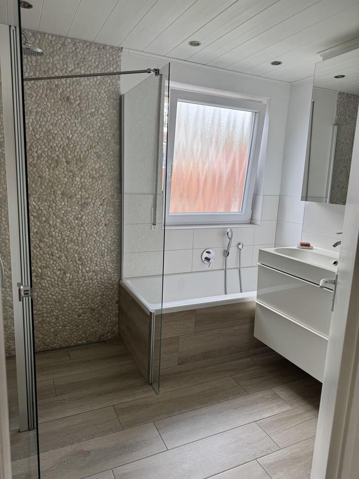• Neues Badezimmer mit begehbarer Dusche und Badewanne sowie separates WC