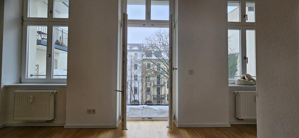 Die Wohnung liegt sehr ruhig im Seitenflügel und verfügt über einen Balkon mit Südwest-Ausrichtung. Bei der sehr gut gelungenen Sanierung ist eine pfiffige 2-Zimmer-Wohnung entstanden: