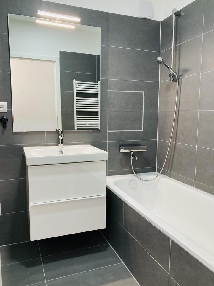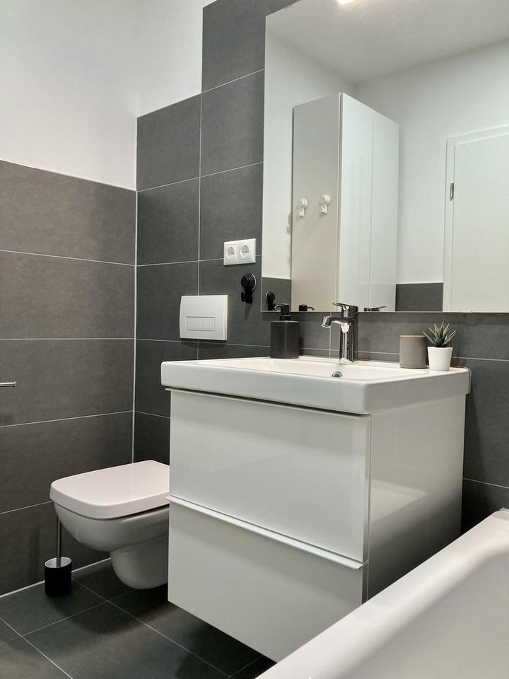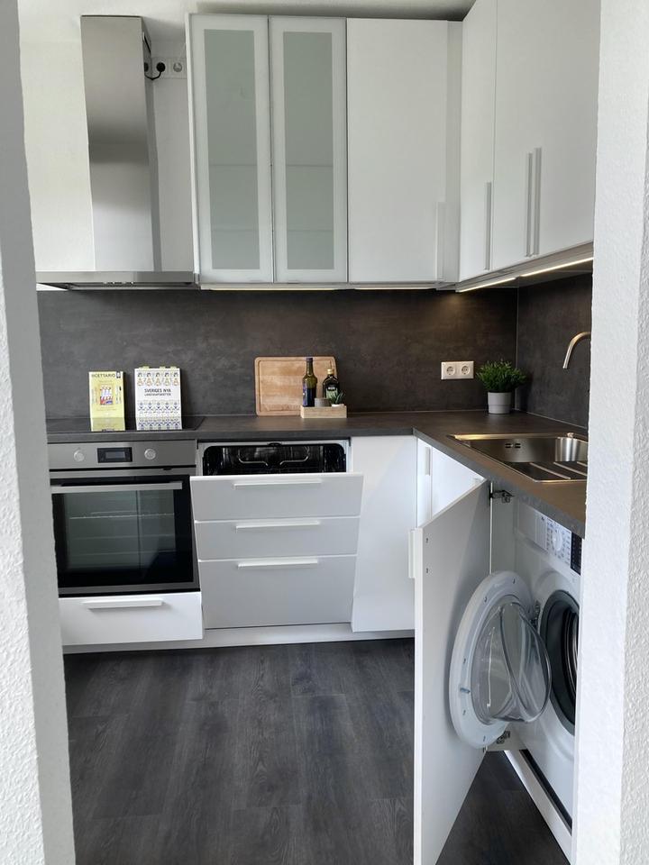 Einheitlicher dunkler Vinylboden, neue EBK inkl. Kühlschrank, Geschirrspüler, Herd, Backofen, Waschmaschine, frisch aufgesetztes Badezimmer, voll ausgestattetes Wohnzimmer, voll ausgestattetes Schlafzimmer, neue Elektrik.
