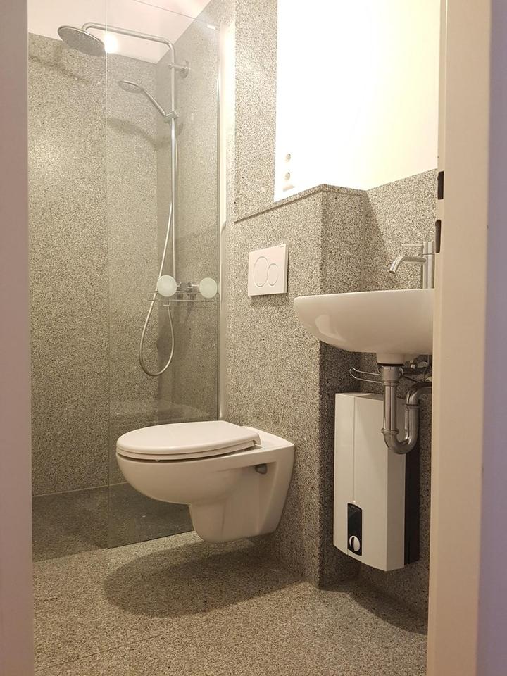 – Natursteinbad mit Regendusche