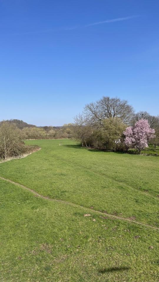 Nach wenigen Metern am Spielplatz vorbei, laden Wander- und Radwege zur Freizeitgestaltung im direkt angrenzenden Naturschutzgebiet ein.