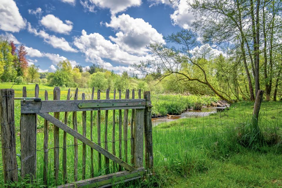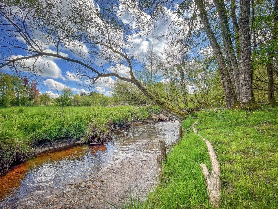 Das Grundstück mit einer Fläche von ca. 2.700 m² wird vom wildromantischen Lüßbach durchzogen und ist eingebettet in eine ruhige, grüne Umgebung. Das stetige Rauschen des Wassers, der Blick ins Grüne und die völlige Abgeschiedenheit vom Alltag verleihen diesem Ort eine außergewöhnliche Qualität.
