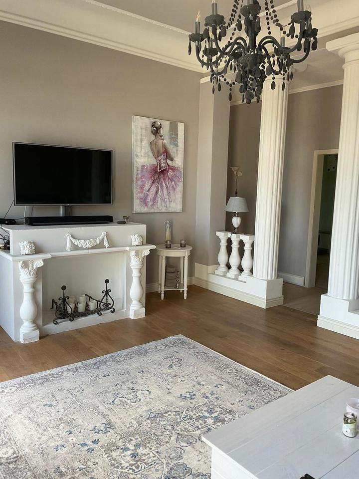 Hohe Decken, edler Stuck und großzügige Fensterfronten schaffen eine lichtdurchflutete Atmosphäre, die den Charakter und die Exklusivität des Anwesens unterstreicht. Während das Gebäude an einigen Stellen modernisiert werden könnte, bietet es zugleich die Möglichkeit, das Interieur nach eigenen Vorstellungen und Bedürfnissen zu gestalten und so den Charme der historischen Architektur mit modernem Komfort zu verbinden.