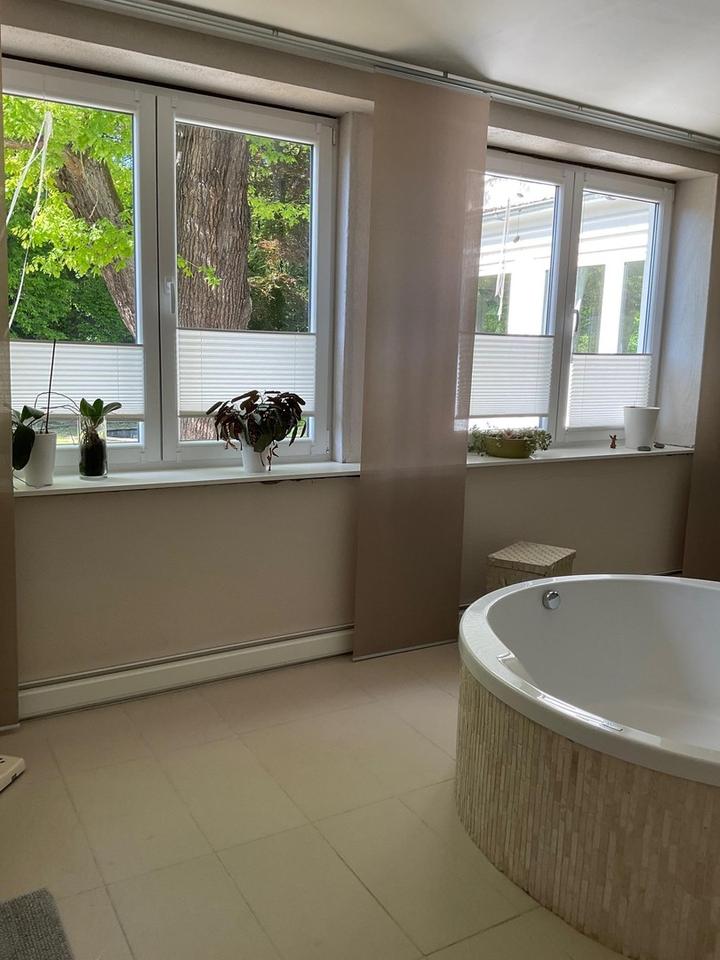 Neben dem Haupthaus gehören zwei separate Nebenhäuser mit einer zusätzlichen Wohnfläche von ca. 280qm zum Ensemble. Diese Gebäude bieten zahlreiche Nutzungsmöglichkeiten, sei es als Gästehäuser, Büroeinheiten oder als Erweiterung des Wohnbereichs. Das vorhandene Potential zur Ausgestaltung und Erweiterung eröffnet spannende Perspektiven, z.B. Mehr-Generationen-Wohnen, neuartige Wohnkonzepte, Senioren-WG, Pension oder als Kapitalanlage.