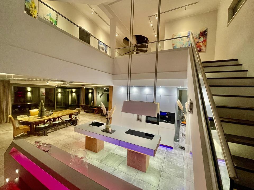 Mit dem eigenen Bauunternehmen im Hintergrund haben wir im Jahr 2017 unsere Ideen in Sachen Architektur und Innenarchitektur umgesetzt. Entstanden ist eines der vielleicht imposantesten, bewohnbaren Bauwerke, welches in Privatbesitz, mit 420 qm(Wohn und Nutzfläche), sicherlich seinesgleichen sucht.