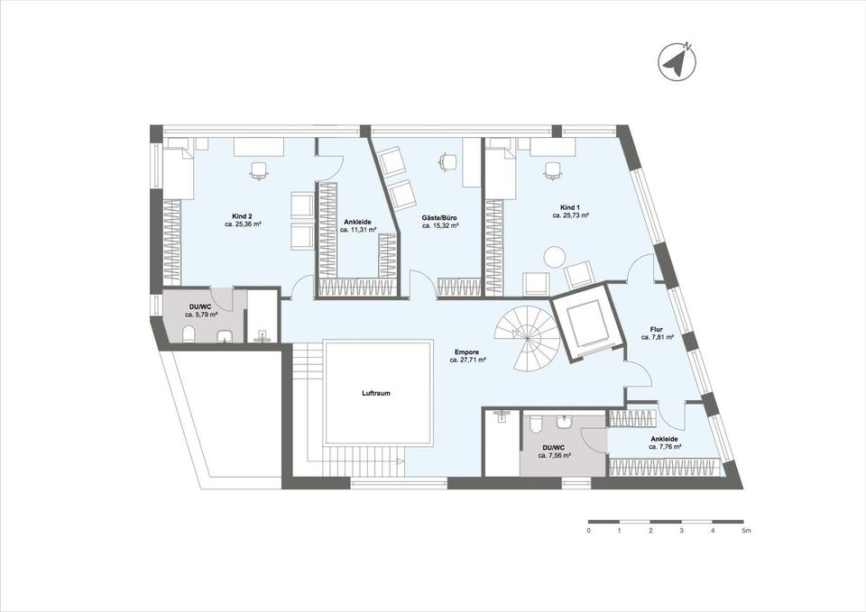 Anzahl der Etagen: 3 (Erdgeschoss + Obergeschoss + Staffelgeschoss)