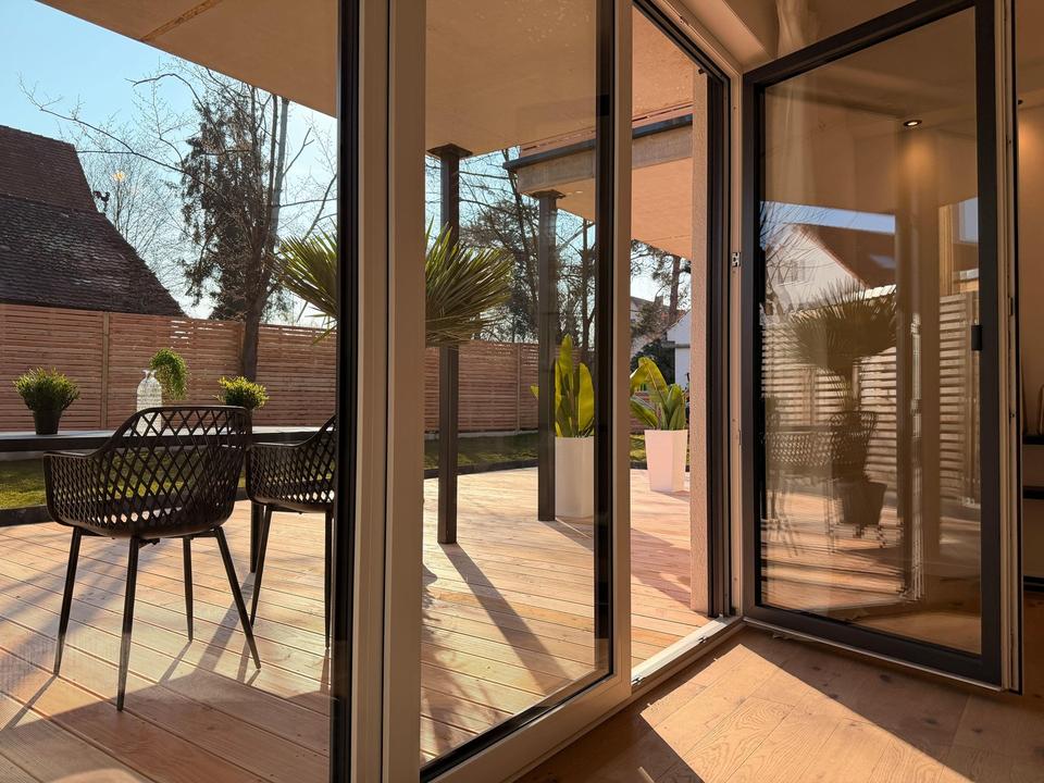 – Schöne große Holzterrasse
