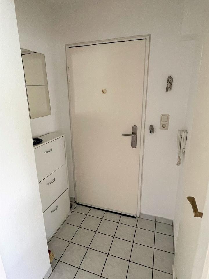 eine Küche mit kleiner Küchenzeile, sowie einem Flur. Auch ein Kellerraum gehört zur Wohnung dazu. Eine Waschmaschine zur Mitbenutzung befindet sich im Keller.
