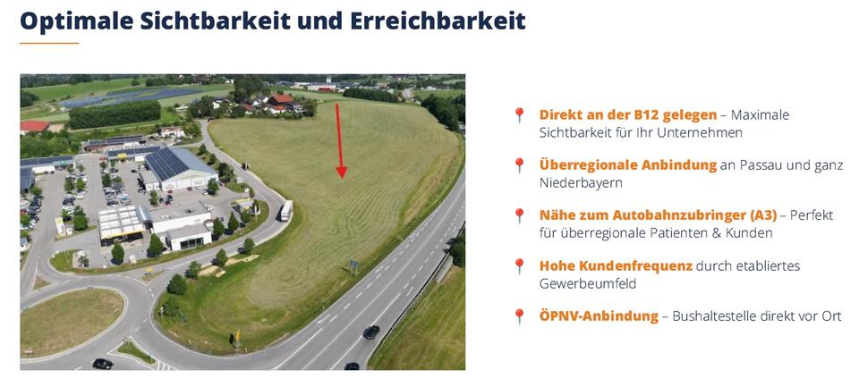 Ihre neue Fläche liegt direkt an der B12 – eine Lage, die täglich wahrgenommen wird: