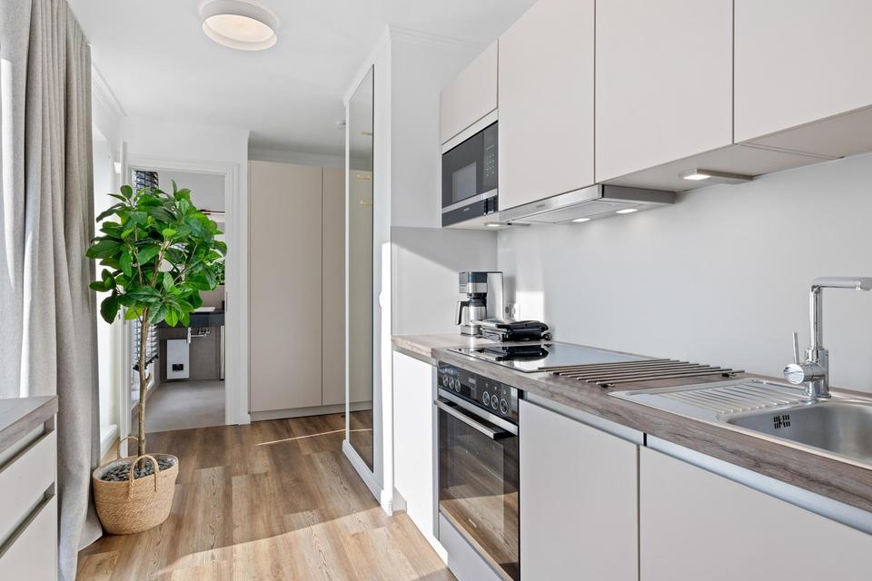 Jede einzelne der sechs Wohnungen wurde 2023 von einem renommierten Innenarchitekten aus Köln eingerichtet und ausgestattet. Individuell für jede Wohnung maßgefertigte Schränke und Einbauküchen wurden ergänzt durch geschmackvolle Gardinen und Jalousien, Spiegel und hochwertige Leuchten. Auch Balkone und Terrassen wurden außergewöhnlich hochwertig möbliert.
