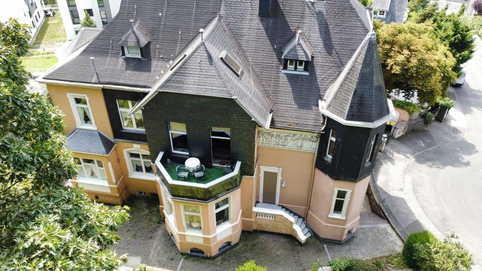 Die Jugendstilvilla liegt in der bergischen Stadt Remscheid, in einer ruhigen Sackgassenendlage mit direktem Zugang zum Stadtpark.