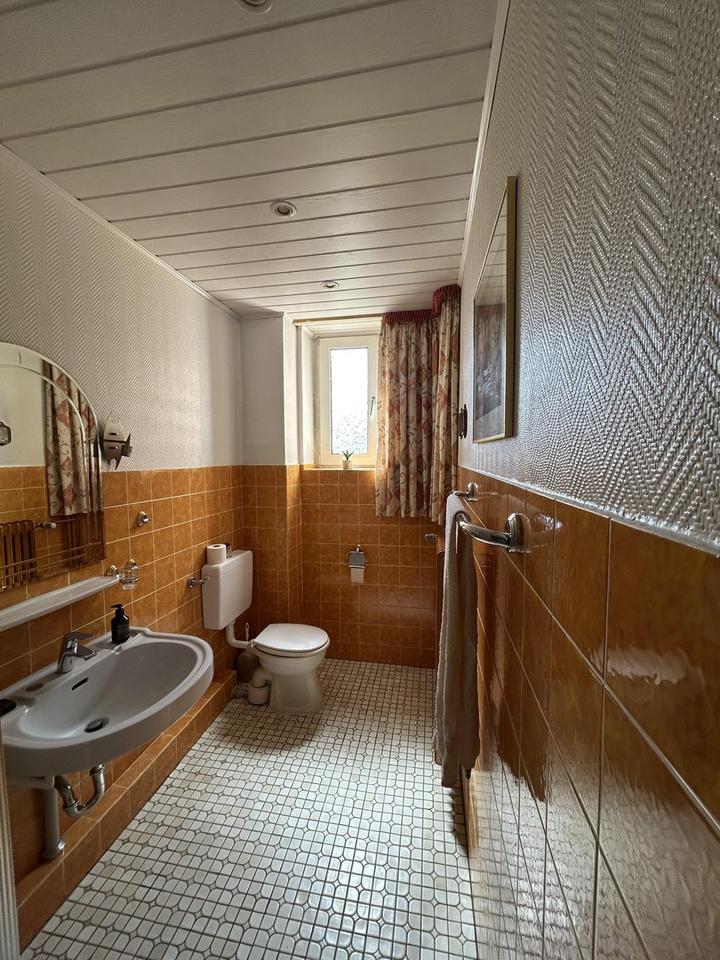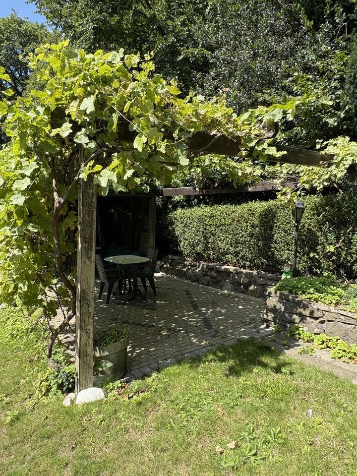 Die solide Bausubstanz bietet eine hervorragende Grundlage und viel Potenzial für eine vielfältige Nutzung. Der Garten lädt zum Verweilen ein und auf der Terrasse findet man unter einem Dach aus Weinreben ein schattiges Plätzchen.