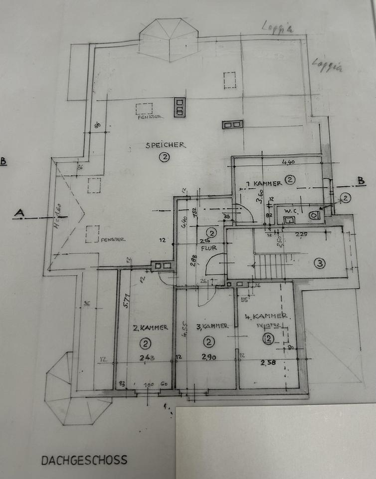 Die freistehende Villa ist aufgeteilt in 3 Etagen, bestehend aus einem Kellergeschoss (ca. 110 qm) und einer Souterrainwohnung mit ca. 80 qm, dem Erdgeschoss und dem Obergeschoss mit je ca. 190 qm, sowie einem ausgebauten Dachboden mit ca. 80 qm.