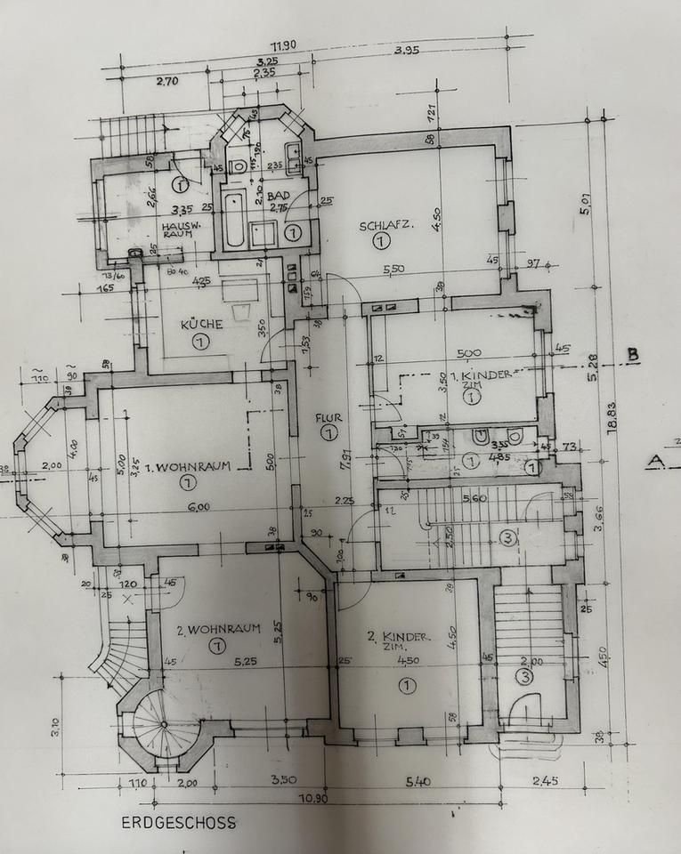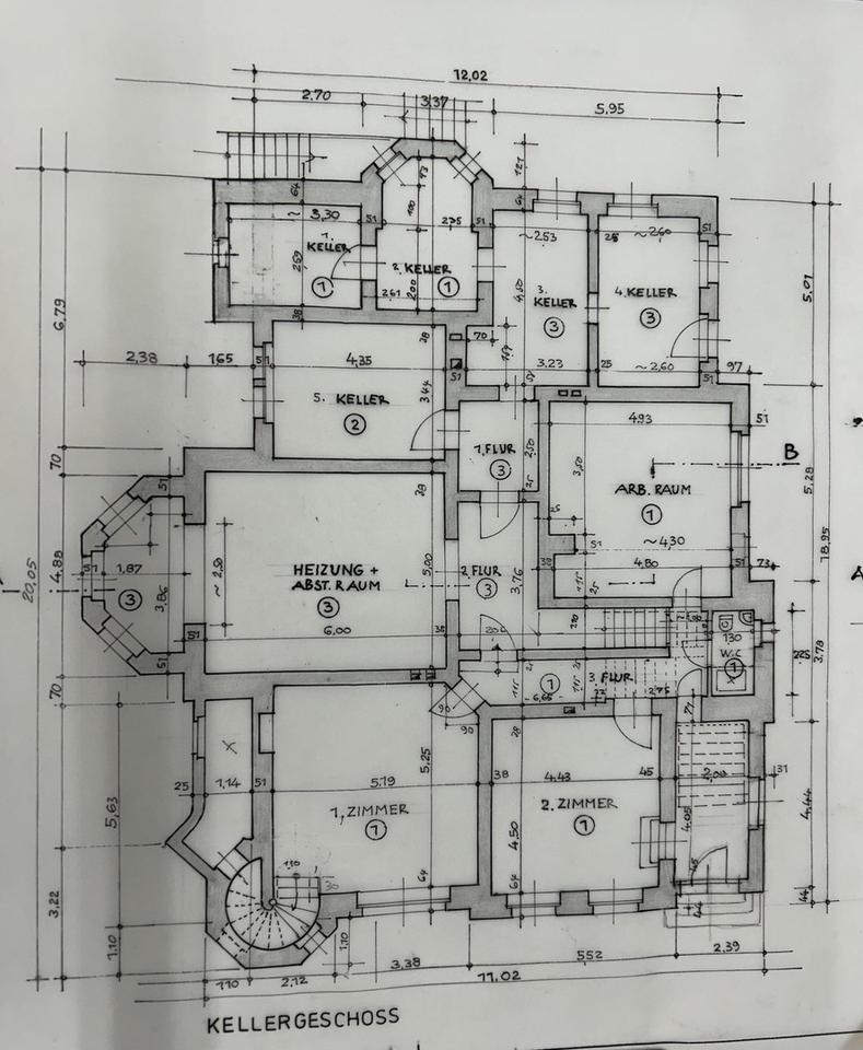 Das Erdgeschoss und die Souterrainwohnung sind mit einer Wendeltreppe verbunden und zur Zeit lediglich durch eine Rigipswand getrennt.