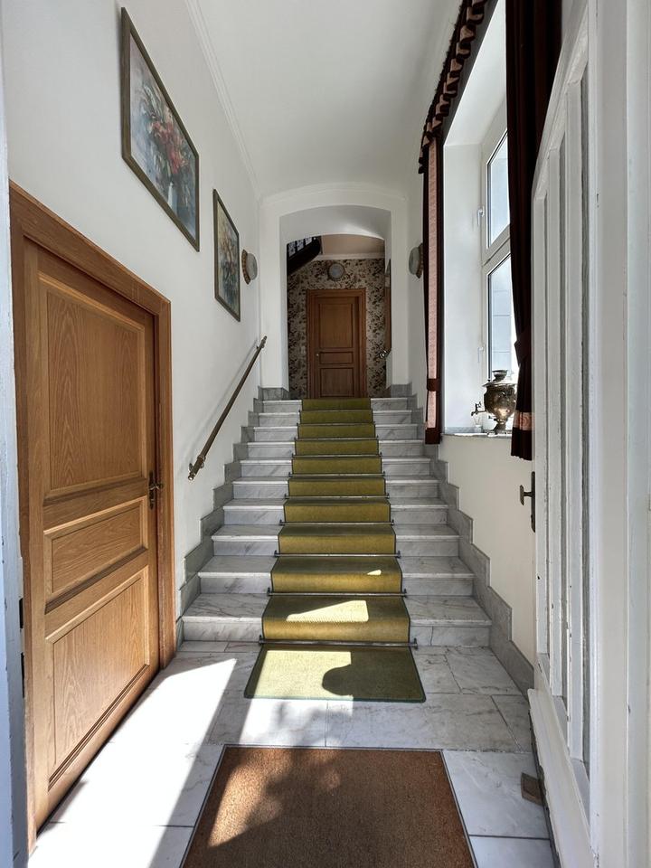 Im Eingangsbereich sind die Marmorstufen und Messinghandläufe größtenteils noch im Originalzustand.