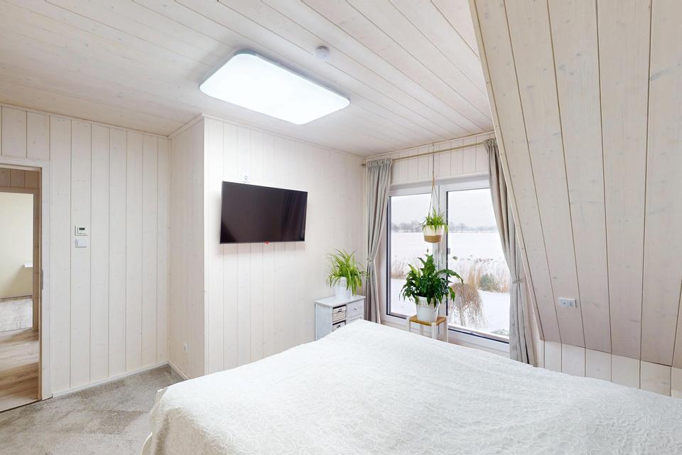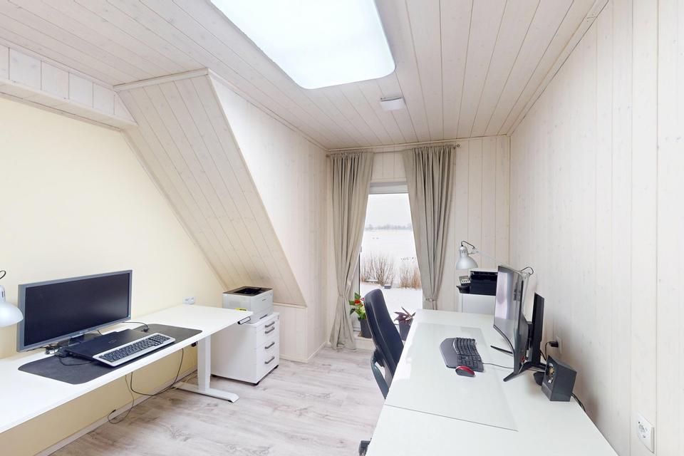 – Decken (EG + OG) und Wände (OG) mit weißem OSMO-Profilholz ausgeführt