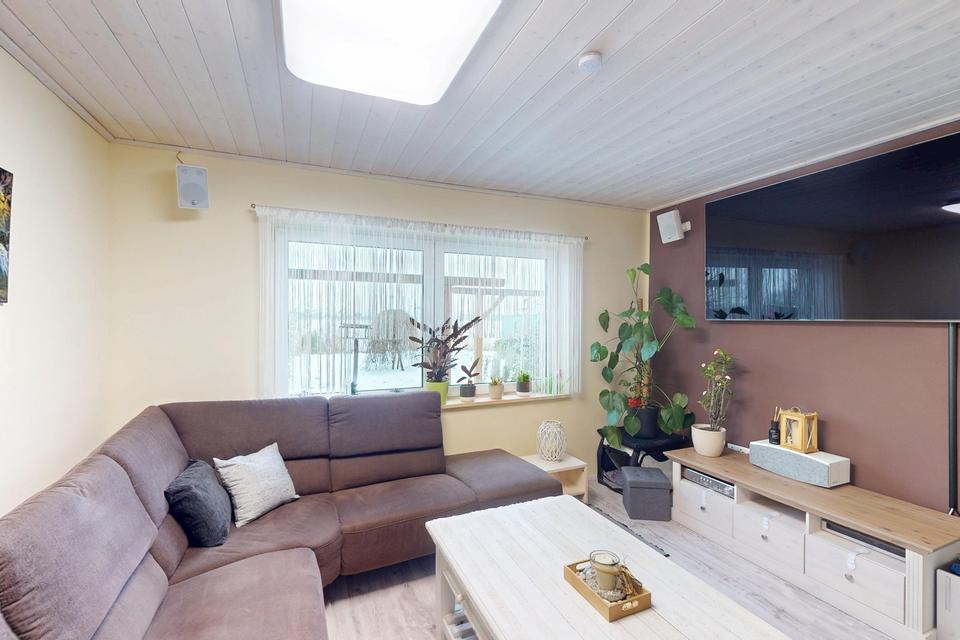 Dieses freistehende Einfamilienhaus aus dem Originalbaujahr 1964 wurde von Januar 2023 bis März 2024 umfassend kernsaniert und technisch auf Neubauniveau gebracht (Energie A+). Auf ca. 135 m² Wohnfläche verteilen sich fünf Zimmer und zwei Badezimmer auf zwei Etagen. Das Haus ist bezugsfertig und eignet sich für Familien oder Paare mit Platzbedarf, die Wert auf moderne Haustechnik, Energieeffizienz und ein großes Grundstück legen. Die Südausrichtung sorgt für gute Belichtung der Wohnräume. Von der Terrasse sowie aus den nach Süden ausgerichteten Wohnräumen eröffnet sich zudem ein weiter, unverstellter Blick über die umliegende Landschaft.