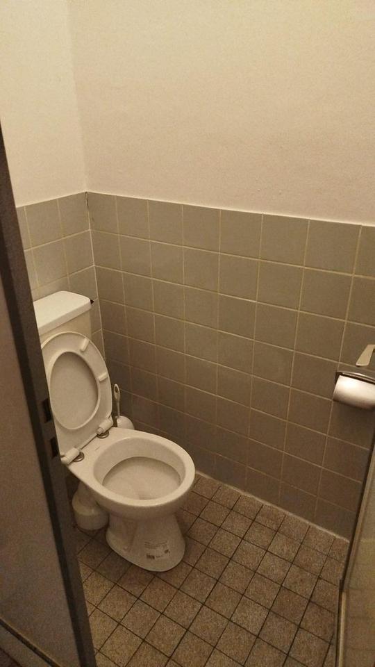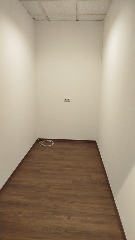 Grundriss: großer Verkaufsraum (ca. 70 m²) + kleines WC (ca. 3 m²) + separater Raum/Lagerraum (ca. 7 m²)