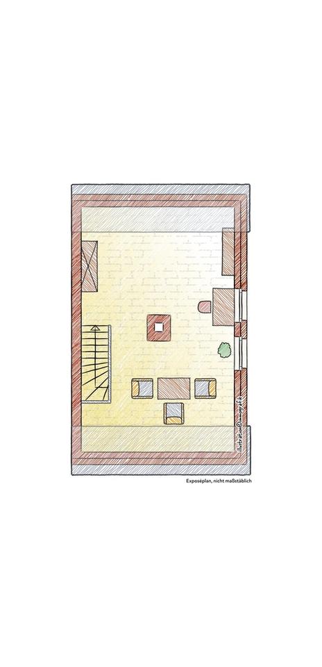 Das Dachgeschoss beherbergt ein großzügiges Studio mit weiterem Ausbaupotenzial. Mit entsprechenden Anpassungen kann hier eine außergewöhnliche, lichtdurchflutete Wohnebene entstehen.