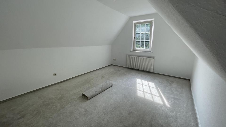 OG: Insgesamt 3 kleine Schlaf- oder Büroräume mit einem neuen, großen Bad. Neuer Teppichboden in allen Zimmern und auf der Treppe.