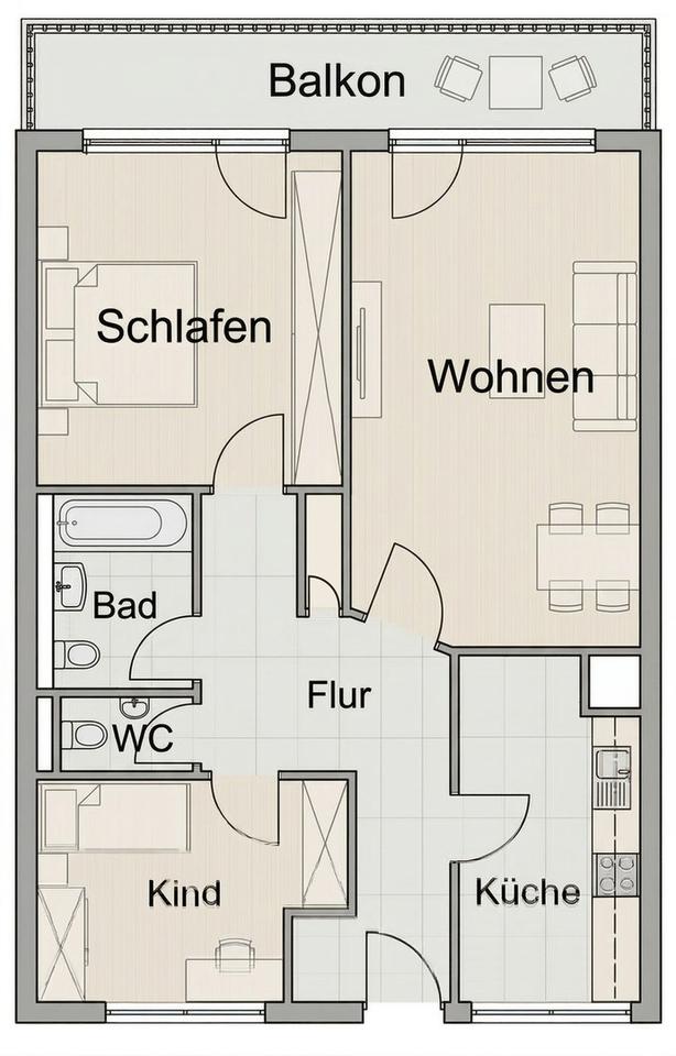 Bitte beachten Sie, dass der beigefügte Grundriss nicht maßstabsgetreu ist und lediglich der Veranschaulichung der Raumaufteilung dient; alle Maße sind Circa-Angaben.