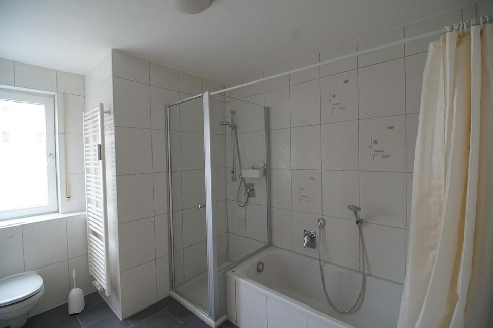 Modernes Badezimmer mit Fenster, Badewanne und separater Dusche