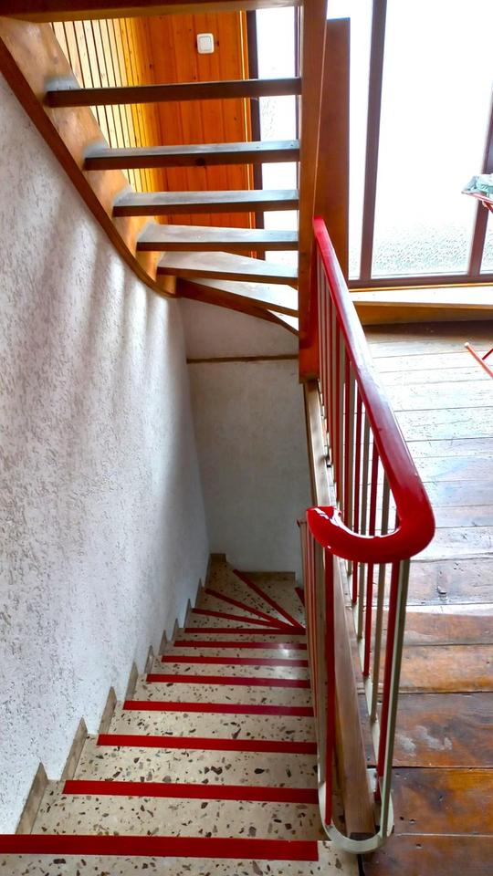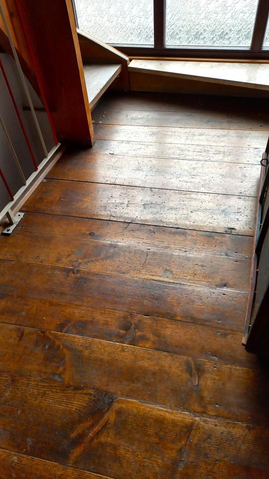 Der Flur im Obergeschoss ist mit Dielenboden ausgelegt.