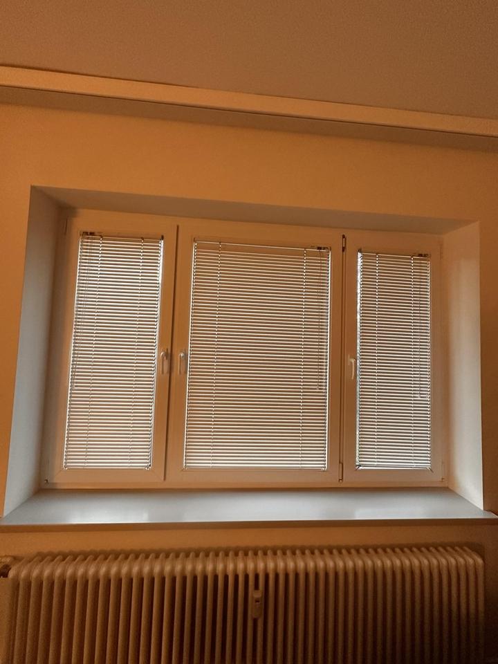 Alle Fenster in den drei Räumen verfügen über verstellbare Jalousien.