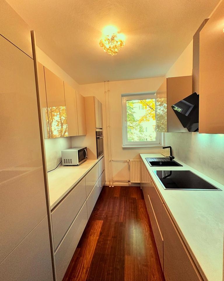 Die Wohnung verfügt über großzügige 74m2 und einem sonnigen Balkon, der zur Parkanlage ausgerichtet ist.