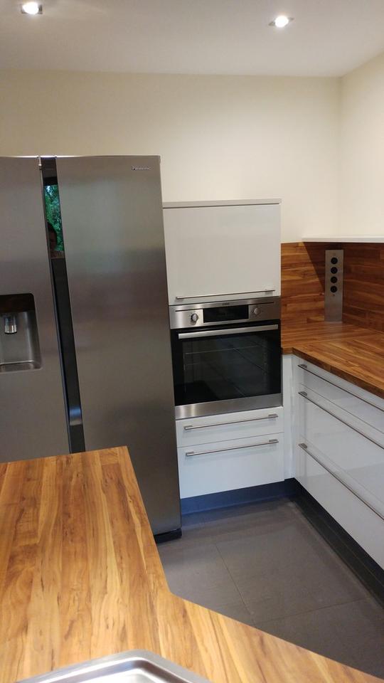 Offene, moderne Einbauküche mit hochwertigen Geräten: