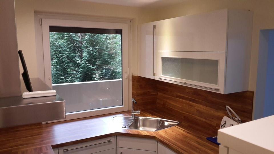 Bereits beim Betreten der Wohnung wird klar, dass hier auf jedes Detail geachtet wurde. Der großzügige Wohn- und Essbereich ist offen gestaltet und wird durch eine moderne, abgehängte Decke mit indirekter LED-Beleuchtung perfekt in Szene gesetzt. Große Fensterflächen lassen viel Tageslicht herein und schaffen in Kombination mit der klaren Linienführung ein freundliches, elegantes Ambiente.