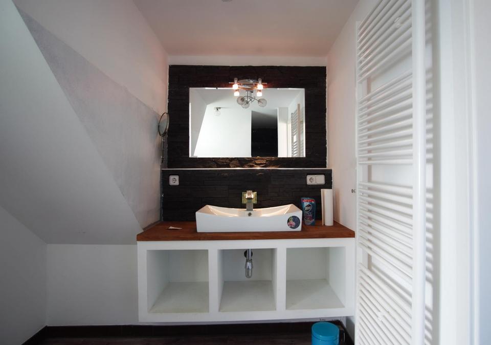 Küchenmöbel und Elektrogeräte sind in der Miete enthalten, ebenfalls die Nutzung des vorhandenen Kaminofens.