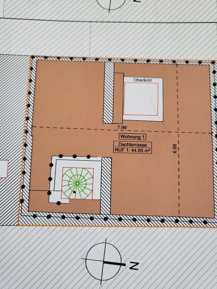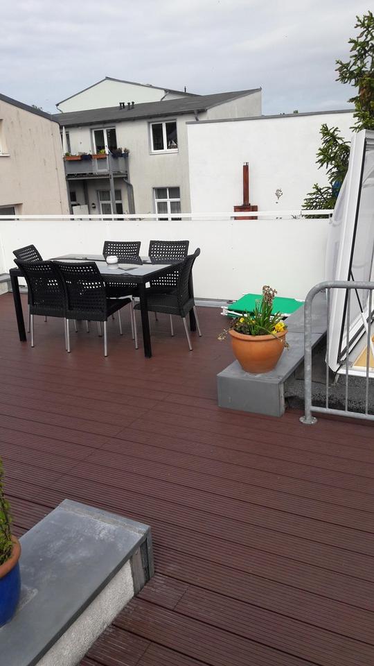 Terrasse, Dachterrasse, Vollbad, Duschbad, Einbauküche, Laminat, Fliesen