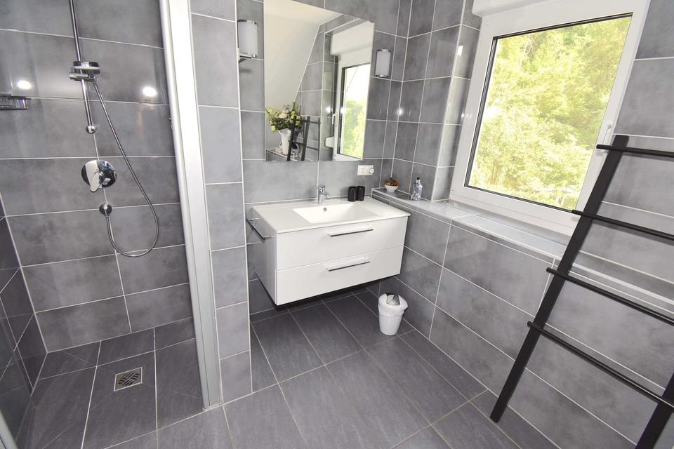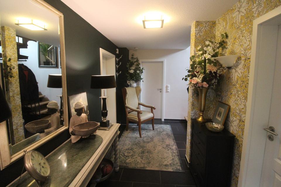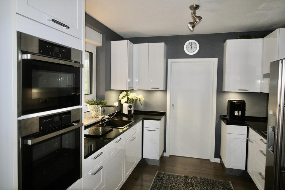 Ein modernes Haus mit Wärmepumpe, Fußbodenheizung, Dreifachverglasung, elektrische Rollläden, Marmor-Kamin, Photovoltaik-Anlage, großes L-förmiges Wohnzimmer, wunderschöne komfortable Einbauküche mit Arbeitsplatte aus Naturstein, Side-by-Side Kühlschrank mit Eiswürfel- und Wasserspender, separat ein kleiner Speiseraum, Garage, Carport, Terrassen und noch vieles mehr. Alles, was ein Haus angenehm macht, finden Sie in diesem Haus. Der wunderschön angelegte, eingewachsene Garten mit Höhenunterschieden rund um das Haus bietet zahlreiche Möglichkeiten, die verschiedenen Sonnenstände zu genießen.
