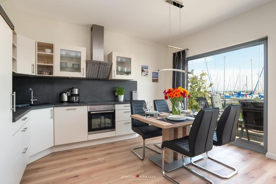 Das Herzstück dieser Immobilie ist die unvergleichliche Sicht: Ob beim ersten Kaffee am Morgen in der Wohnküche, beim Entspannen auf der großzügigen Terrasse oder beim Erwachen in einem der beiden Schlafzimmer im Obergeschoss – der freie Blick über den gesamten Yachthafen ist Ihr ständiger Begleiter. Bodentiefe Fenster- und Terrassenelemente fluten die Räume mit natürlichem Licht und holen die Ostsee-Atmosphäre direkt in Ihr Wohnzimmer.
