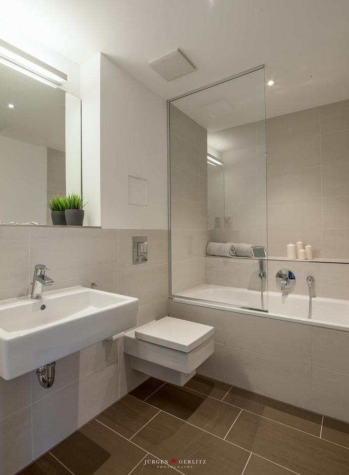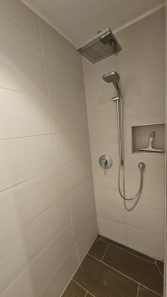 Die Wohnung verfügt über zwei Badezimmer, die geschickt auf beide Etagen verteilt sind: