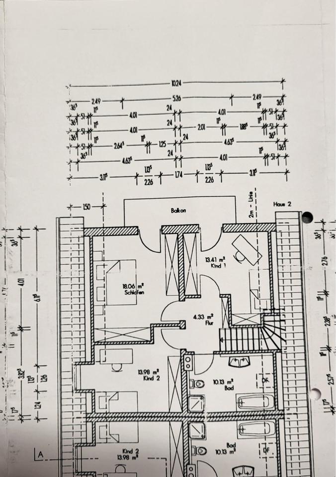 Im OG befindet sich das Bad mit 2 Waschbecken, Badewanne und Dusche, großes Schlafzimmer und zwei Kinderzimmer. Der Dachspitz ist komplett gedämmt und zum Ausbau vorbereitet oder als Stauraum gedacht.