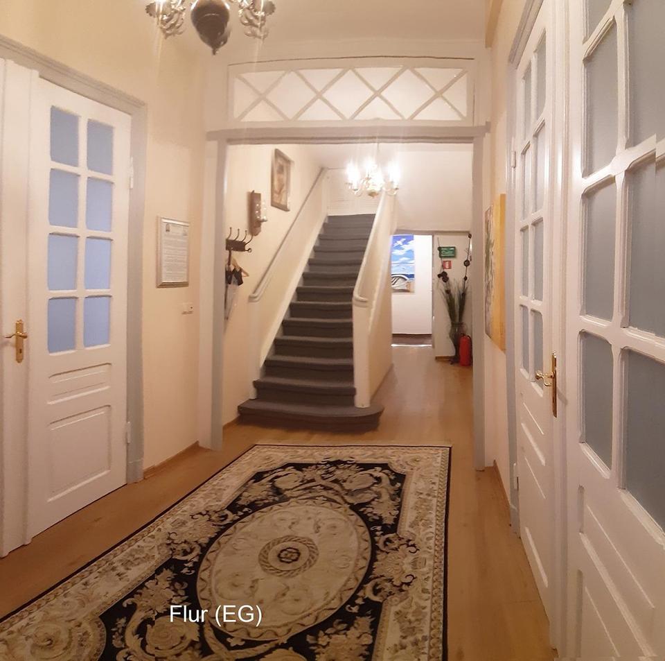 Das Gebäude erstreckt sich über drei Etagen: Erdgeschoss, Obergeschoss und Dachgeschoss. In jedem Geschoss befindet sich je eine große Wohnung.