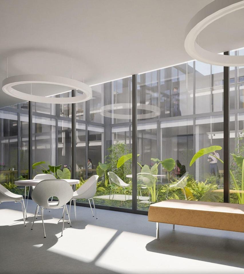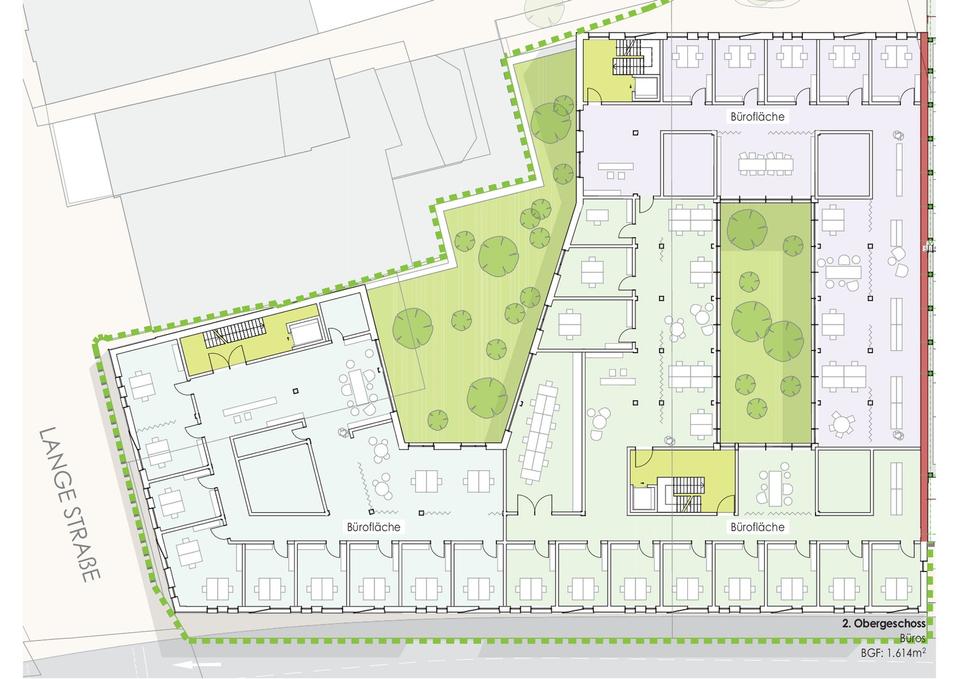 der Lage im 2. Obergeschoss kann für einzelne Mieteinheiten eine zusätzliche Außenwirkung sinnvoll sein. Hierzu besteht – vorbehaltlich weiterer Abstimmungen – die Möglichkeit, Großflächenplakatflächen im benachbarten Parkhaus zu nutzen. Die Raumgestaltung der Büroflächen ist flexibel, zukunftsfähig und nachhaltig ausgelegt. Unterschiedliche Nutzungsszenarien können ohne großen baulichen Aufwand realisiert werden. Großzügige Fensterflächen und Lichthöfe sorgen für viel Tageslicht und unterstützen eine angenehme, moderne Arbeitsatmosphäre. Bei Ausstattung, Grundrissgestaltung und Ausbaumöglichkeiten kann der Mieter aktiv mitwirken.