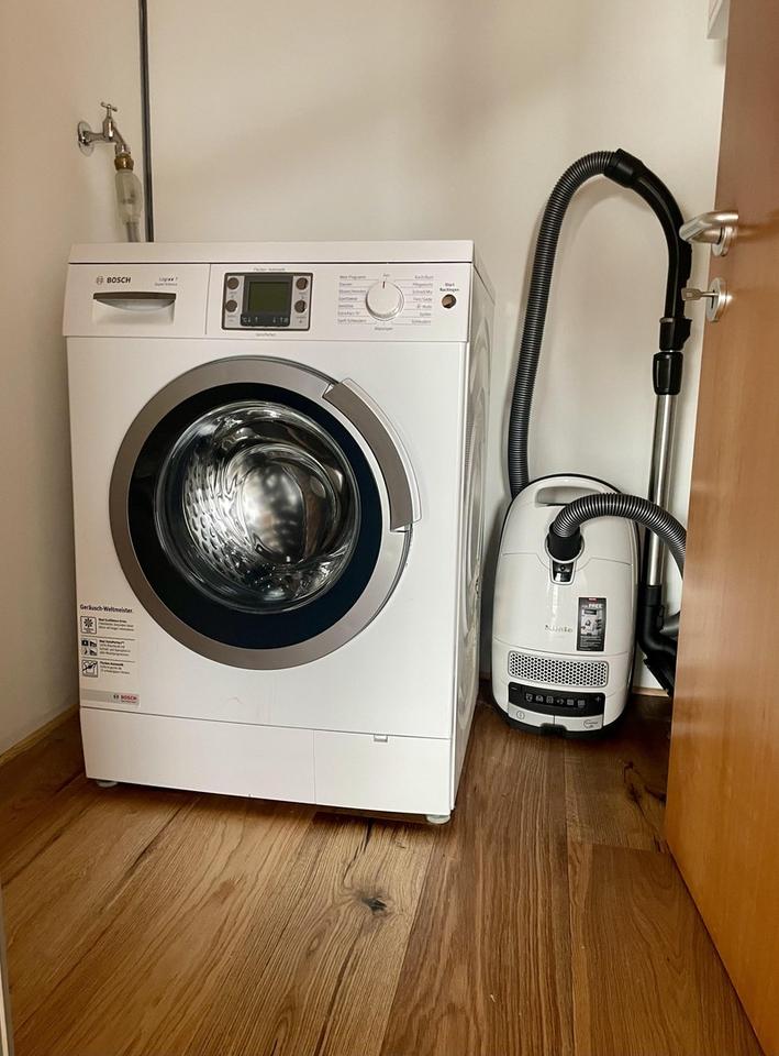Die Elektrogeräte sind energieeffizient, viele Möbel bestehen aus Massivholz. Beheizt wird die Wohnung über Fernwärme.
