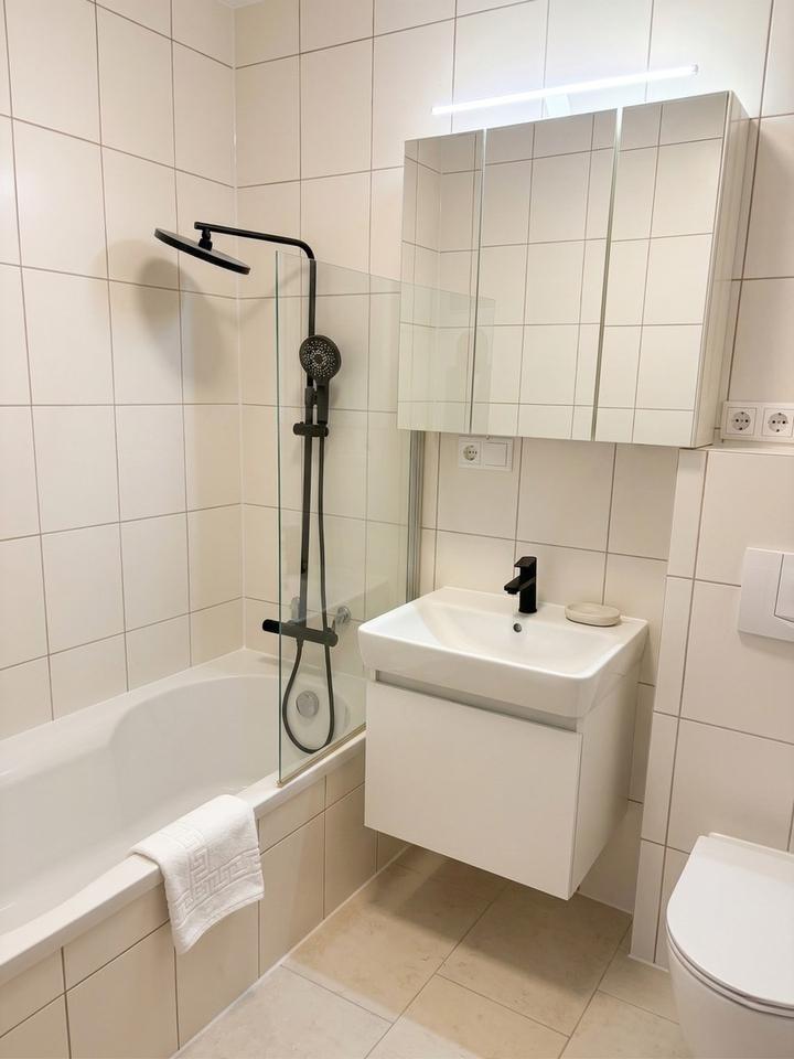 • Badezimmer mit Badewanne und integrierter Duschmöglichkeit